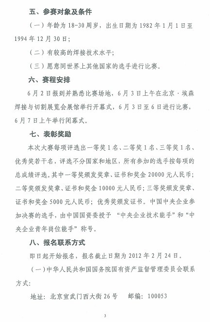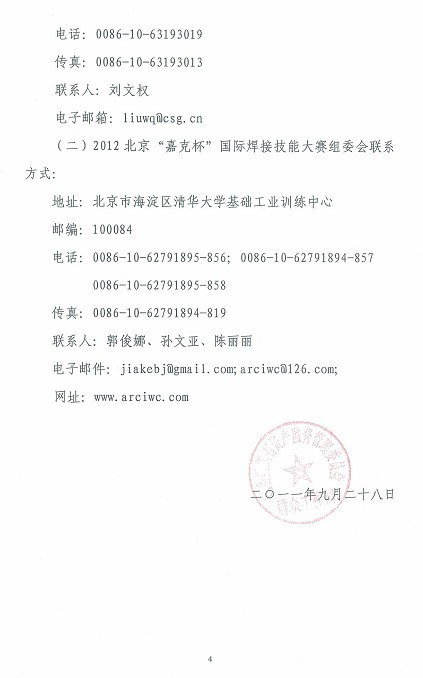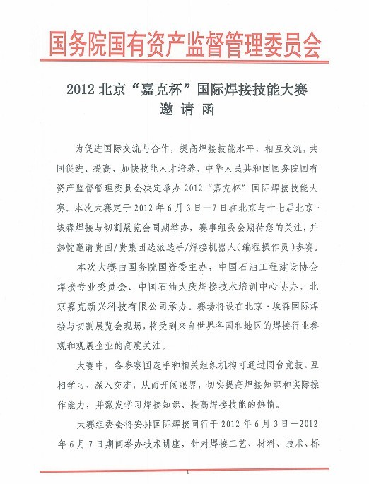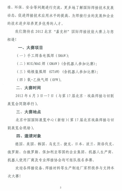 2012北京“嘉克杯”国际焊接技能大赛邀请函