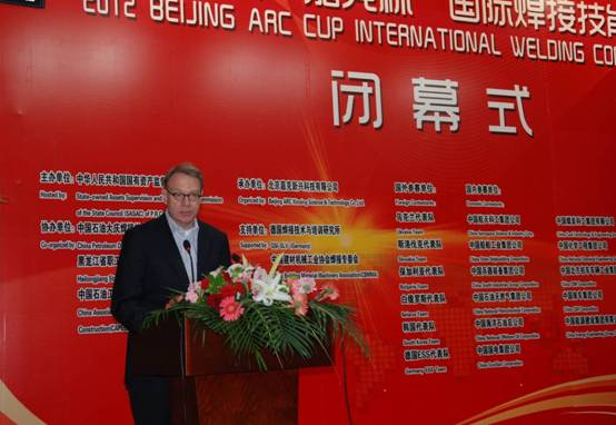 最后,国资委群工局郭保民副局长宣布:“各位选手,各位来宾朋友们,2012北京‘嘉克杯’国际焊接技能大赛闭幕式到此结束!我们期待着,2014年北京再相会!”