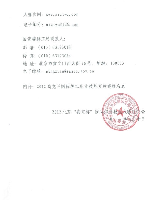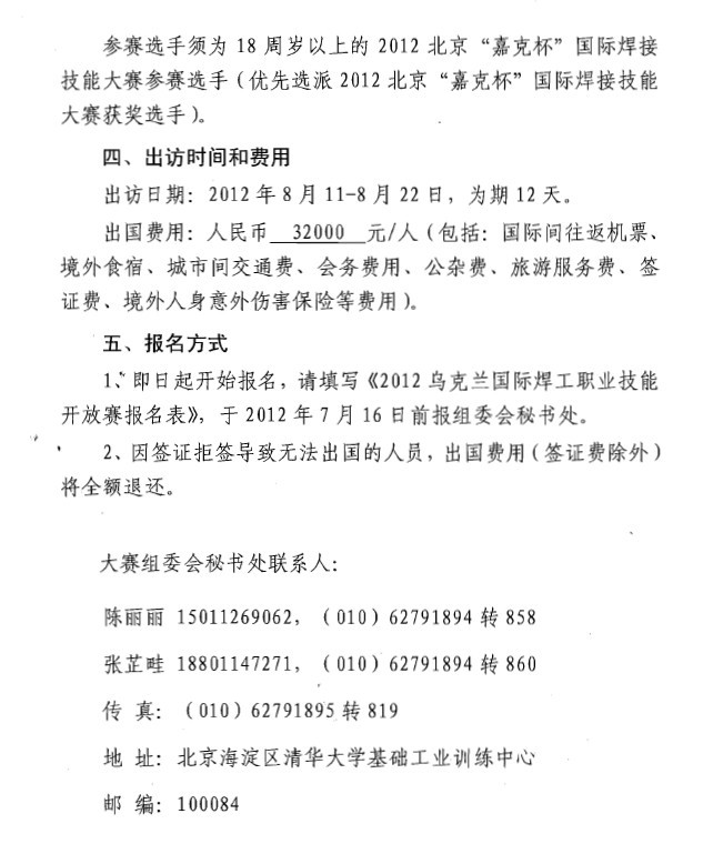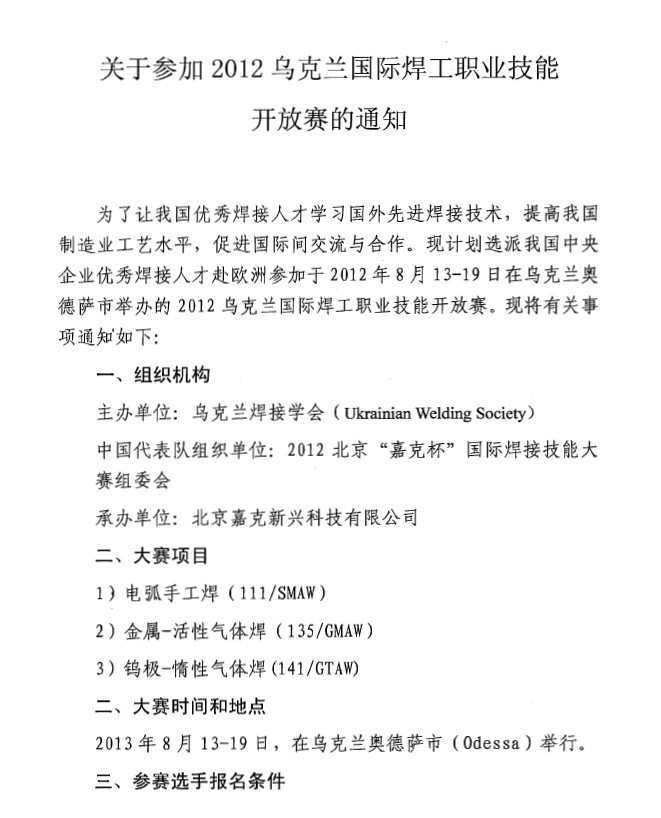 关于参加2012乌克兰国际焊工职业技能开放赛的通知
