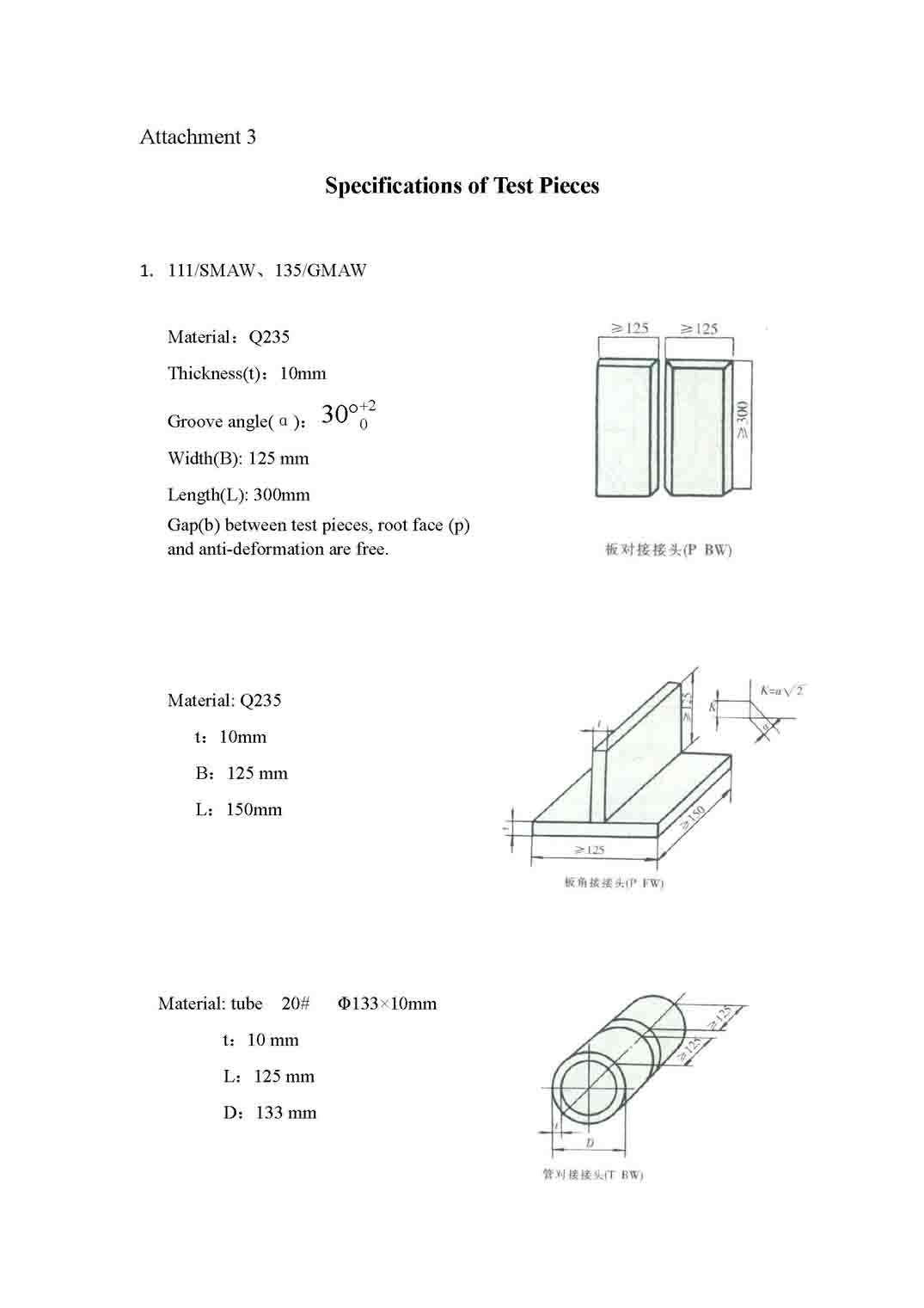 Attachment 3: Specifications of Test Pieces (to be revised)