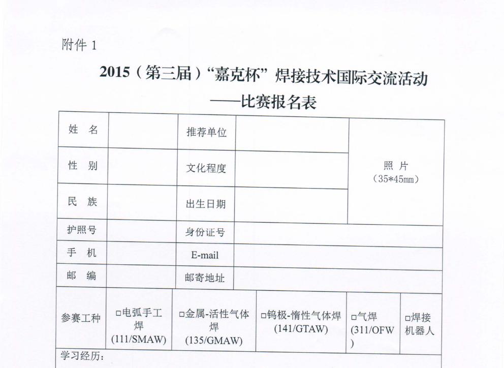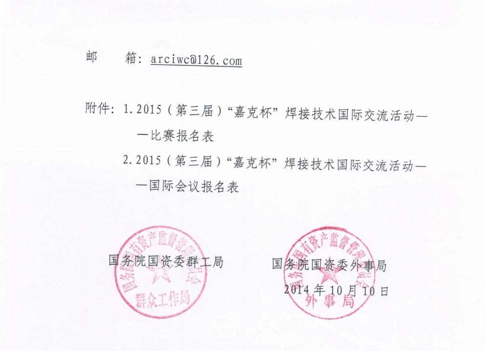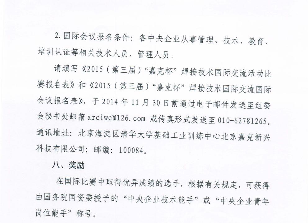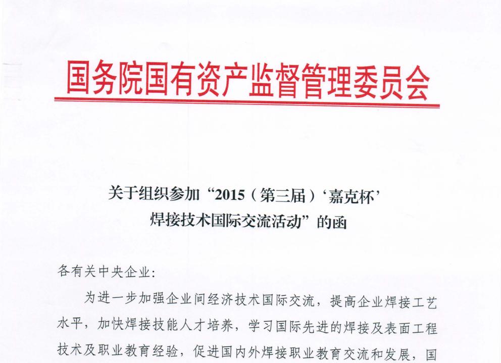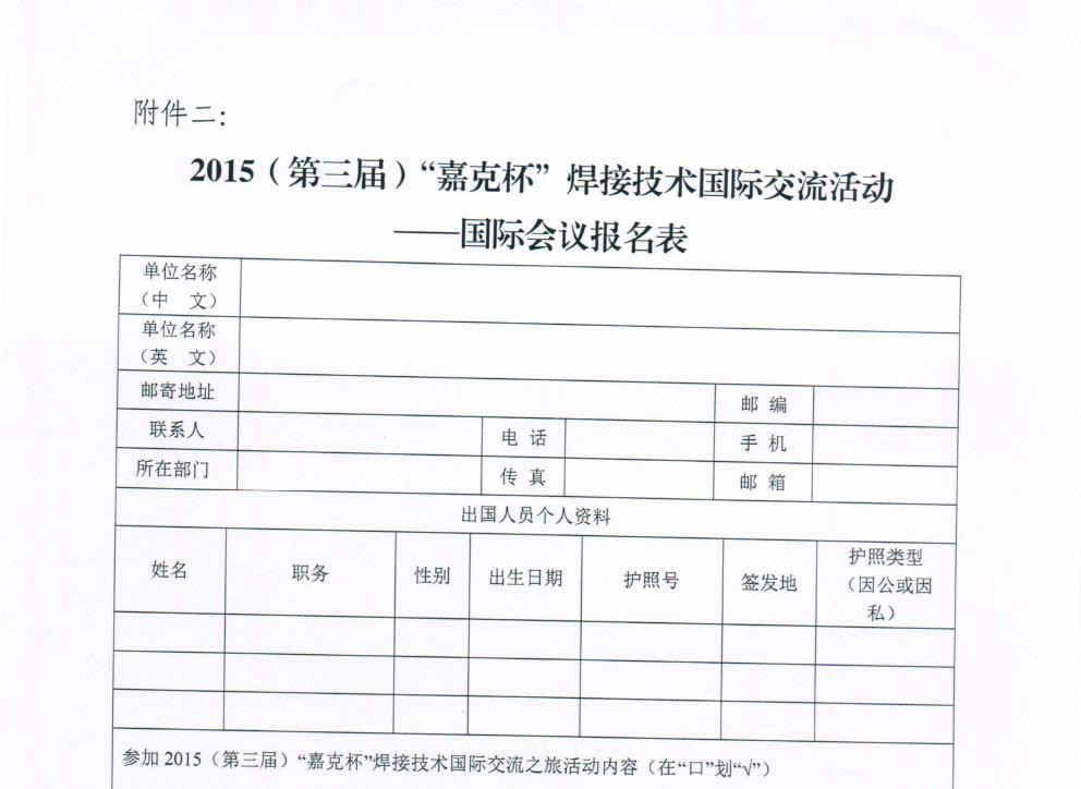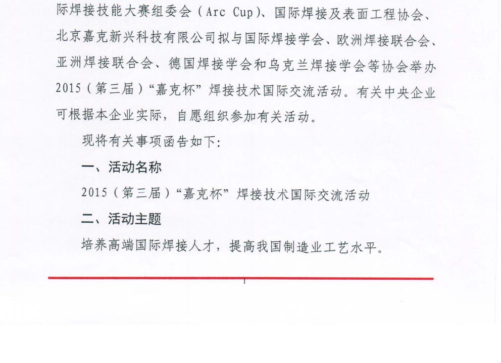 关于举办“2015(第三届)‘嘉克杯’焊接技术国际交流活动”的函