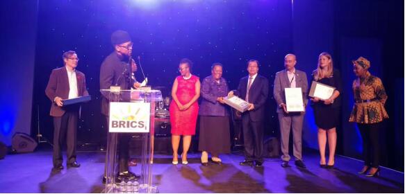 南非高等教育与培训部部长Naledi Pandor女士作总结致辞,她对各参赛选手取得的成果表示祝贺,并强调了金砖文化和多元化思维,强调了通过竞赛加强文化和技能交流,建立人文交流机制。她殷切希望各国选手能够在金砖大赛的合作机制下有所收获、有所成长,期待参赛的年轻一代未来能成为改变世界的人。