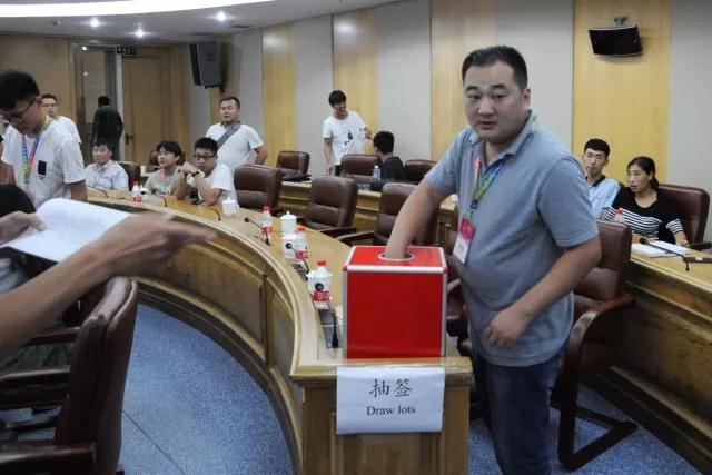各参赛队领队、裁判长一同参加领队会议。会议进一步强调了大赛的规则和要求,并进行了比赛场次抽签仪式。