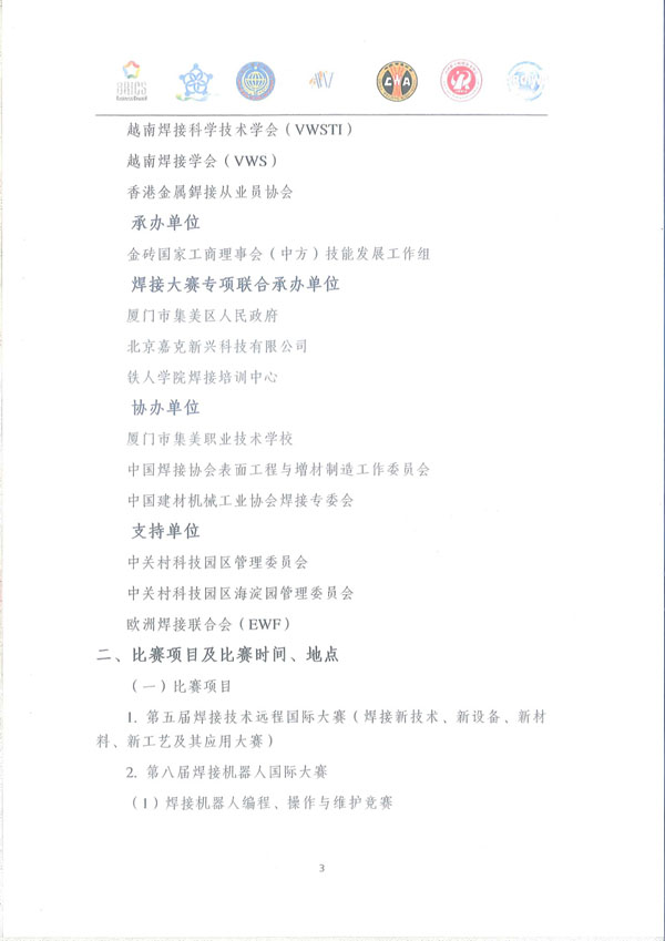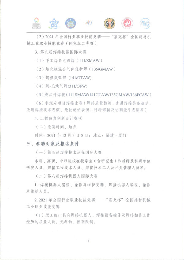 (6)非规定项目焊接比赛(焊接质量检测、先进焊接装备演示、先进焊接技术表演、绝技绝活表演、特种焊接及切割能手表演等)